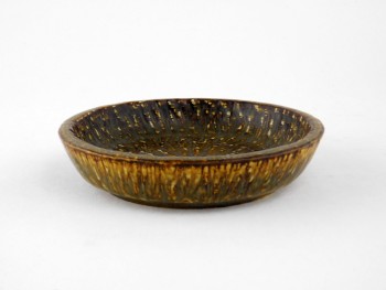 Fad fra Birka serien. med glasur i brunlige farver Stemplet R, GN og SWEDEN Designet af Gunnar Nylund Nr. 8 H 5 cm og Ø 26 cm Stand: fejlfri
