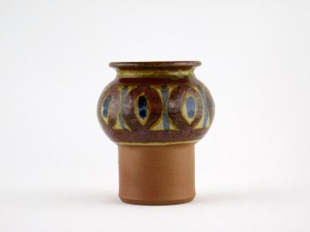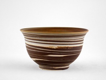 Skål med rå og glat glasur i brun og turkisblå farver Med stempel fra 1950 og MS. designet af Marianne Starck Nr. 6367-1 H 6,5 cm og Ø 14,5 cm Stand: god, dog en bristet glasur bobbel