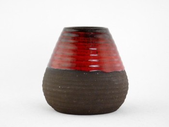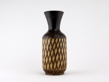 Vase med rumbemønster og brunmeleret glasur Stemplet LØVEMOSE og DANMARK H 23 cm og Ø 10 cm Stand: fejlfri